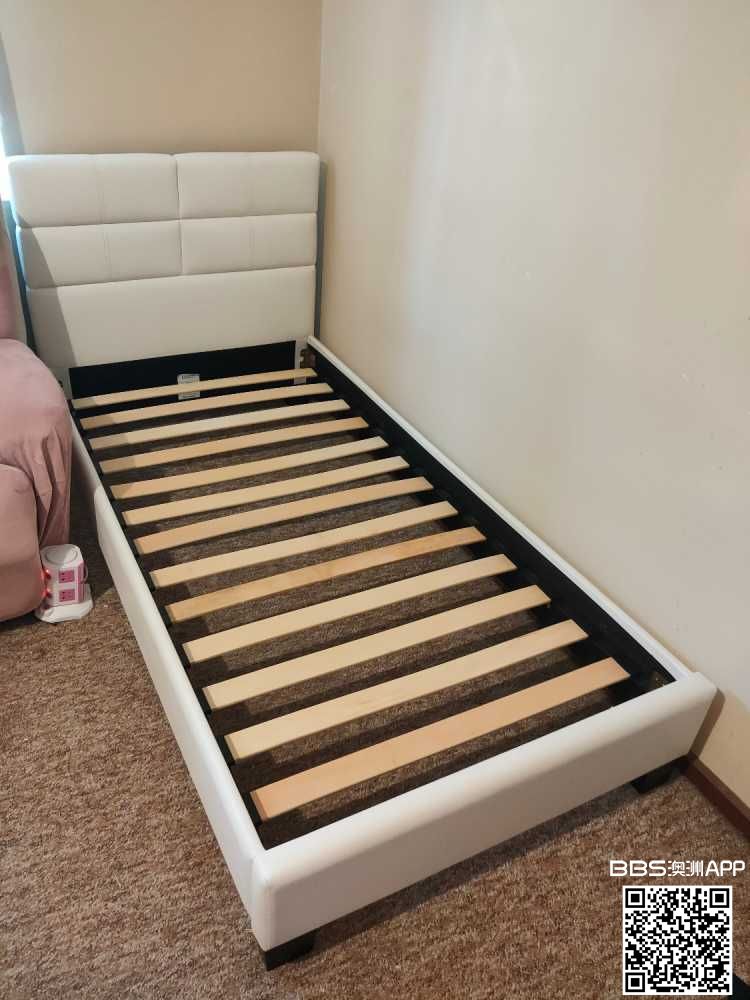 Sold 搬家出售白色单人床,售价$100,不议价。 床垫,床垫罩,蓝色床单免费送。 一直保存在室内,情况良好。