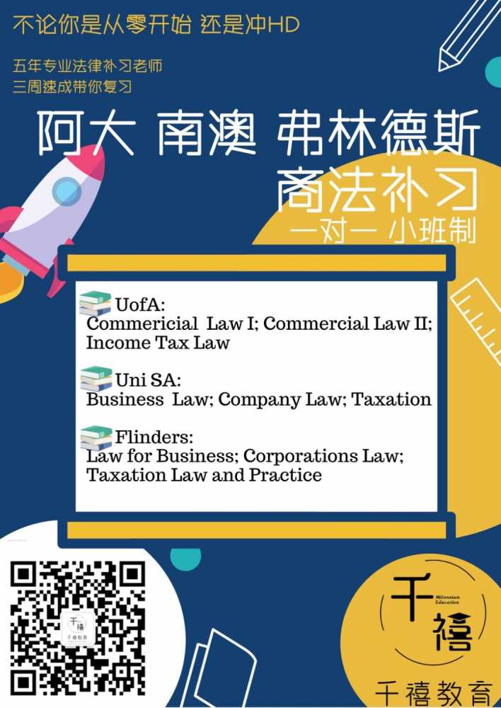 各大学校商法 税法补习 一对一或小班制 只做五年商法税法的老师,带你私人定制复习计划。 补习科目: 阿大 Commercial Law I,Commercial Law II,Income Tax Law 南澳 Busness Law,Company L ...