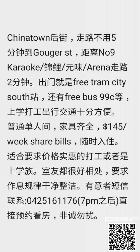 Chinatown单人间招租,随时可以入住,长租优先。位置好,价格便宜。非诚勿扰