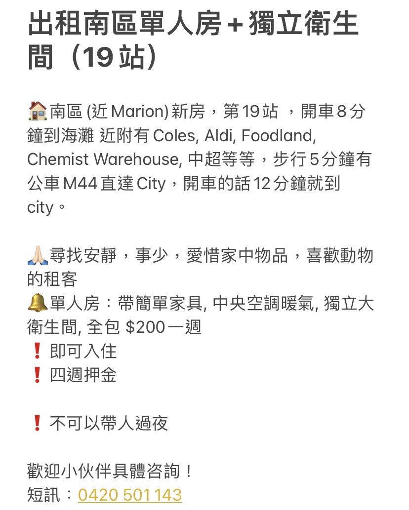 出租南區(19站) 單人房連獨立衛生間