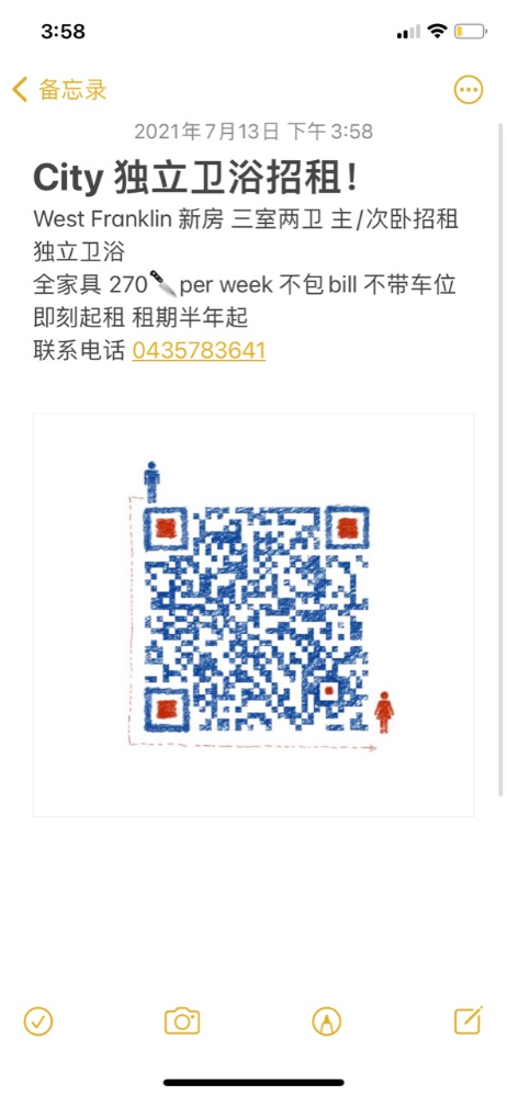 City 独立卫浴招租! West Franklin 三室两卫 主/次卧招租 独立卫浴 全家具 270per week 不包bill 不带车位 即刻起租 租期半年起 联系电话 0435783641