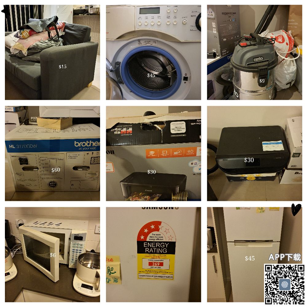 回国甩卖,甩卖,全场低于60刀 双人沙发15刀,平时两个女生就放一些已经晾干的衣服 洗衣机海尔45刀,滚筒洗衣机,不怕皱褶,一年用下来很省电 brother打印机,那种大大的打印机,彩印还是黑白,速度很快,免去打印烦恼,类似学校和officework那种哦 hp打印机30刀,应付小打印没问题,省下天天去学校打印的烦恼 三星冰箱45刀,超级省电,超级省电,省电,南澳电费老贵了,可以看它的功耗,就是小脏了,一切完好 吸尘器9刀 微波炉6刀(转盘有点小坏)加热没问题 回国甩卖,甩卖,价格实惠,不合适可以商议到合适为止。 有意联系0426099770 微信547335620 本人没车,只能自取了。位置离ct不远,免费tram到。 |