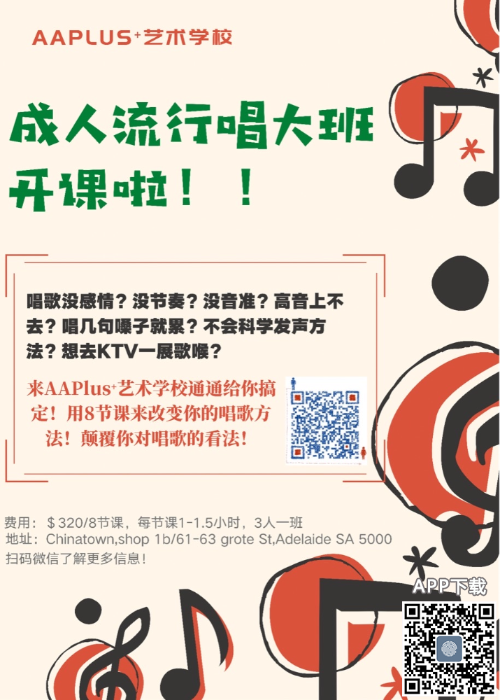 成人流行声乐大班开课啦~2022年新班开课!抓紧时间报名! 8节课让你体会到不一样的唱歌感觉 让你重新认识到自己到底唱的有多好听 上课时间:周六或者平常的下午 费用:$320/8次课 快 ...