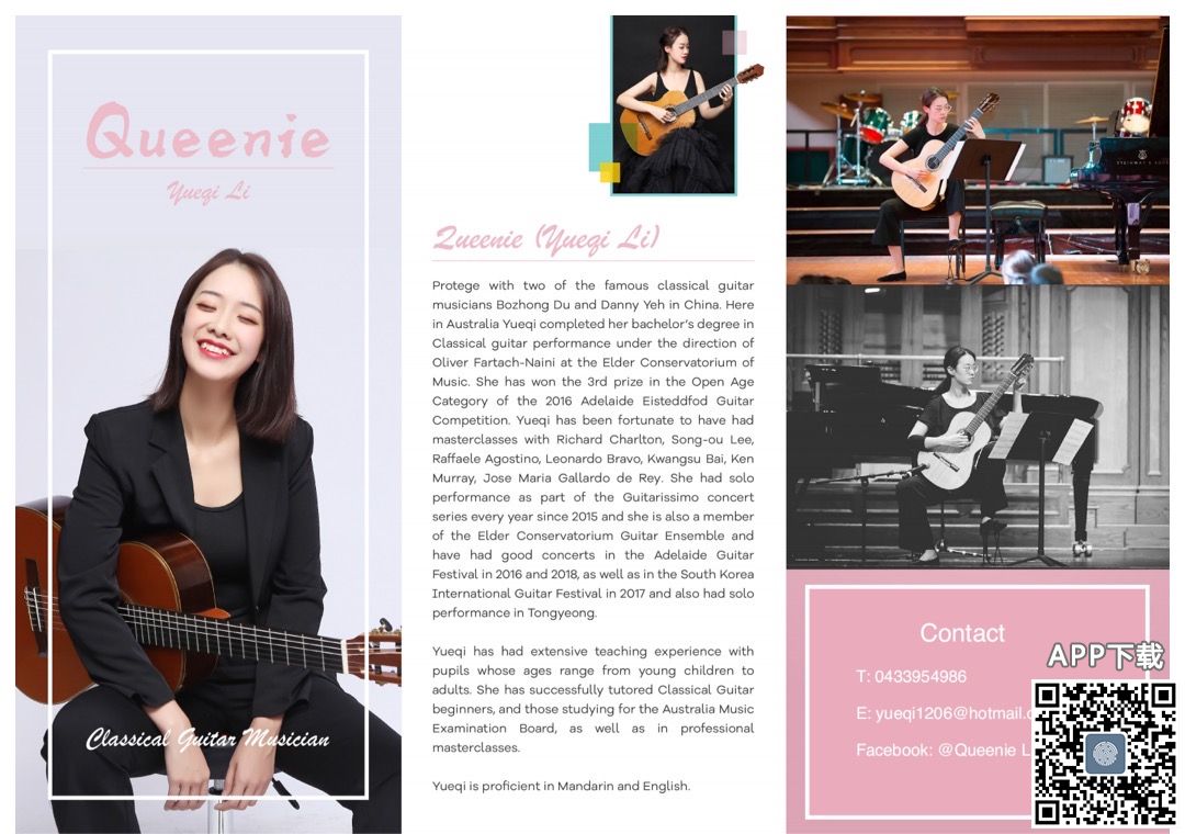 阿德唯一一位古典吉他表演专业毕业生。现就读古典吉他表演与教育研究生。先后跟随两位世界古典吉他名师学习,演出经历丰富,拥有三年教学经验,中英文流利授课。学生跨度5到60岁,AMEB考级通过率100%。 更多信息可 ...