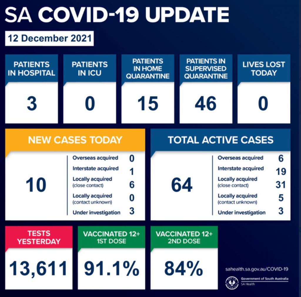 南澳过去24小时新增10例确诊病例! 最新的病例包括两名儿童和一名青少年,四名年龄在20至50岁之间的男性和三名年龄在20至70岁之间的女性。 在这些病例中,一人在州际间感染,6人在南澳本地感染,是已知阳性病例的 ...