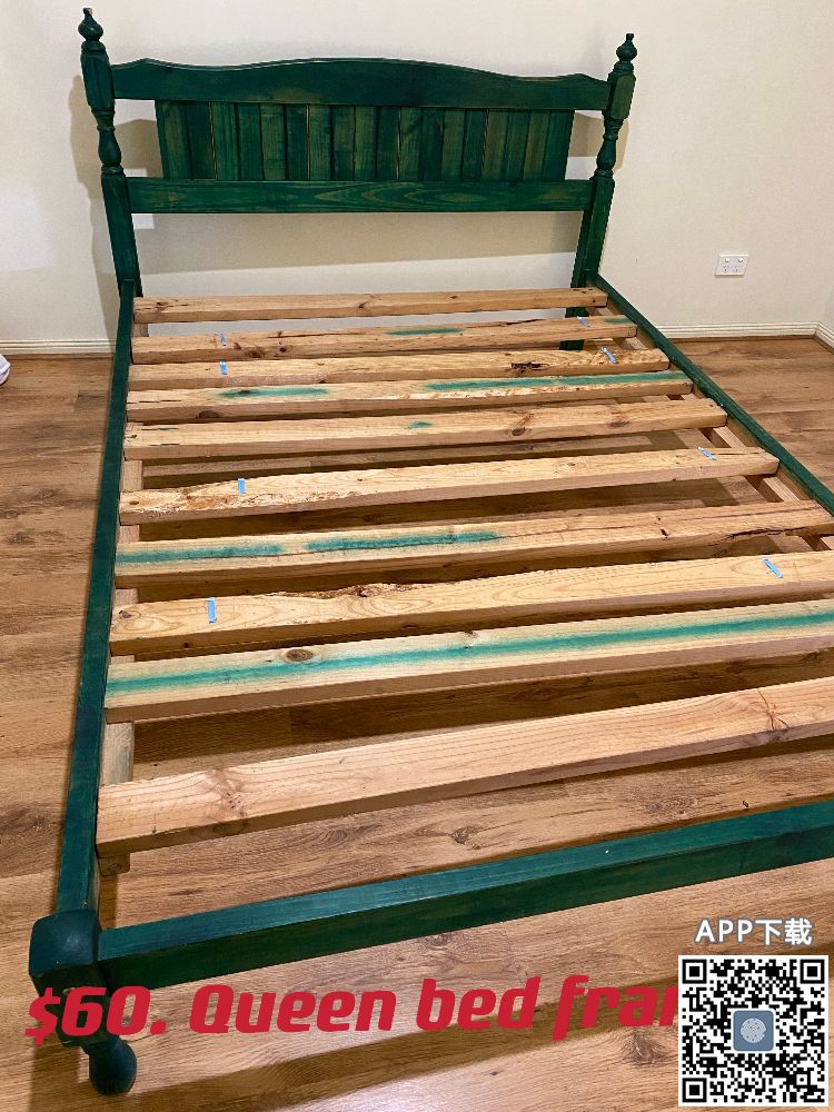 Queen size1.5m 宽的大床$50可免费送货上门,实木家具,很结实 电话:0410787688