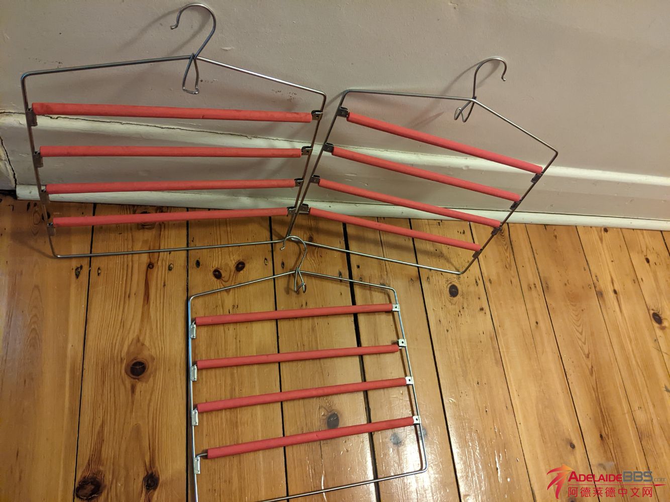 出全新不绣钢裤架3个共$10.有需要请电0425222861 谢谢!