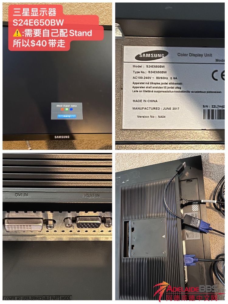 三星显示器 S24E650BW 只需$40 一切正常使用! 需要自己配stand 市场价格30-60 Mitcham pick up or 每周五central market 面交 最后一张图微信联系 谢谢铁子们