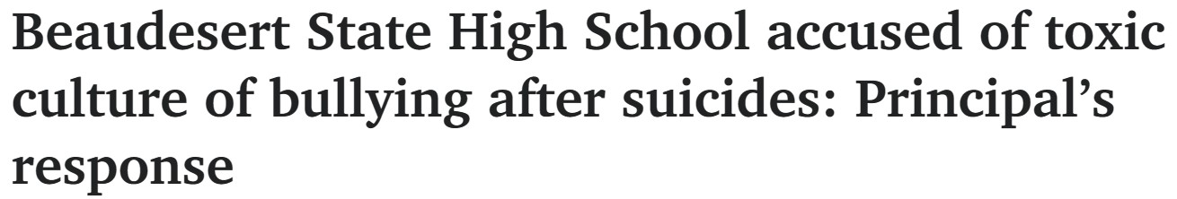 昆士兰一所州立高中被指存在恶毒的欺凌文化,该校校长为学校辩护,呼吁家长"加强尊重学生行为的重要性"。 在这封署名为"校长"但未包含Stephensen先生姓名的信件中,还要求家长和监护人与他 ...