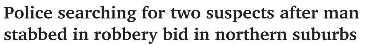 周四,Salisbury发生一起抢劫未遂案,警方正在追捕两名涉案嫌疑人。 警方呼吁任何目击者拨打Crime Stoppers热线1800 333 000 联系警方。 在同一天晚上发生的另一起无关事件中,一名来自Mile End的 ...