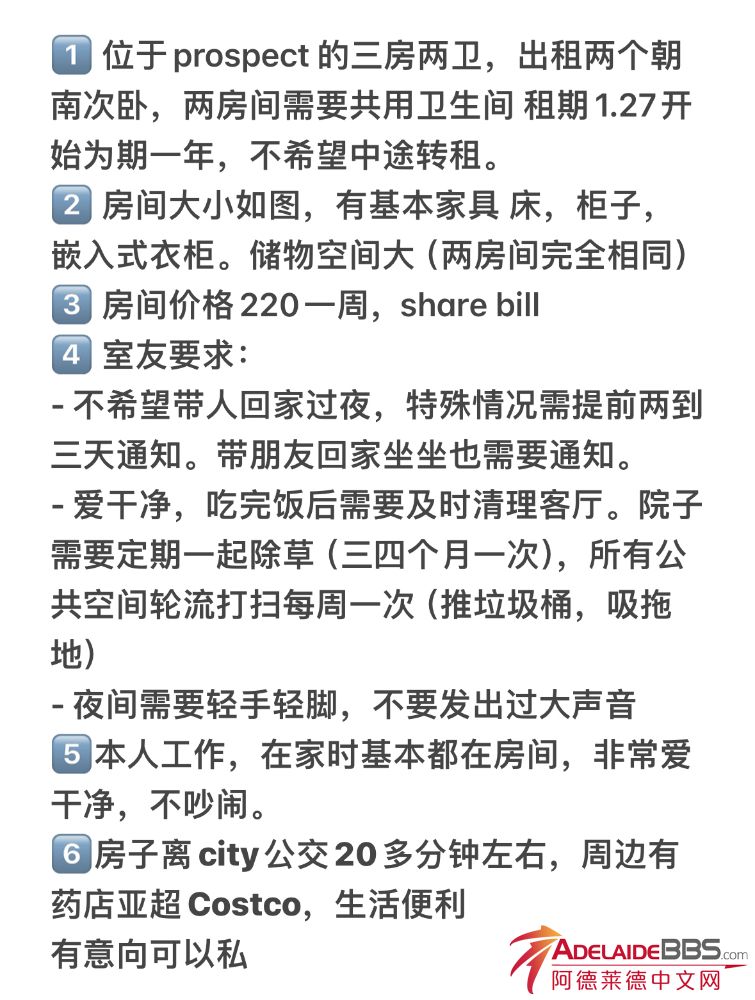 Prospect 出租两次卧,具体信息如下!有意者评论,欢迎打扰
