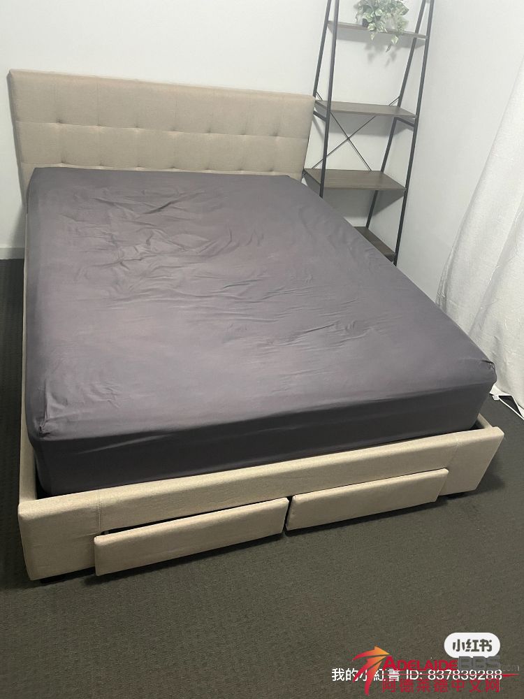 已出售)))只有一个女生住+用,去年1月一手买的,有收据 99新0污渍 queen size床垫加床架790刀 double size床垫加床架250刀 请Blakeview自提 有意请短信联系 0493426662