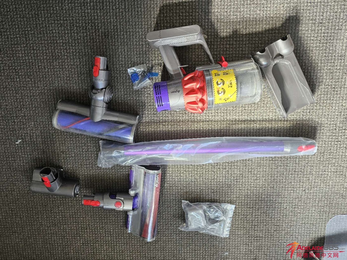 dyson v10居家吸尘器全套配件原价900刀! 现在低于半价400刀,图片上的所有配件一起打包出!有固定在墙上的支架,还有清理沙发和床的网红除螨头,还有针对地板的吸头和针对地毯的吸头全套。充电器和延长杆都是刚刚 ...