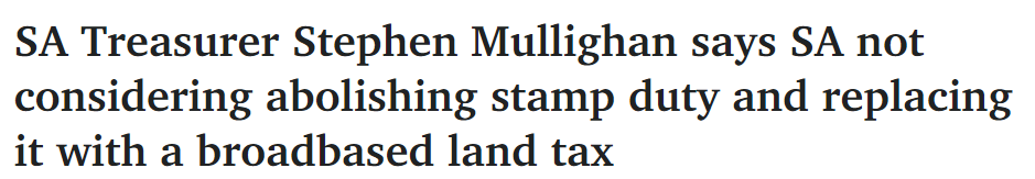 据悉,南澳政府不支持联邦政府呼吁取消印花税,代之以征收土地税——财政部长Stephen Mullighan认为,这样的政策只会进一步推高房价。 Stephen Mullighan表示,政府更关注的是帮助首次购房者进入市场的措施以及增加 ...