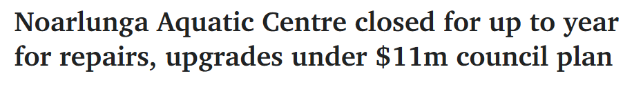 据悉,阿德南部一个受欢迎的水上运动中心将关闭长达一年,用于对建筑、屋顶和泳池过滤设备进行升级——同时不排除提高入场费的可能性。 Onkaparinga议会计划在接管Noarlunga Aquatic Centre的管理权后,斥资1080万 ...
