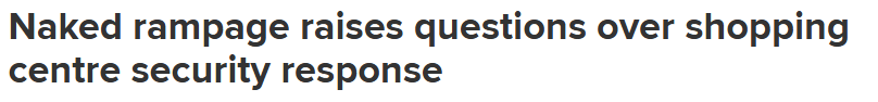 周一,阿德莱德Marion Shopping Centre发生了一起18岁裸体男子肆意妄为事件,人们对该购物中心的安保措施提出了严重质疑。 目击者称,该男子只穿着袜子,撞倒了购物者,并与一名推着婴儿车的女子发生冲突,然后把商 ...