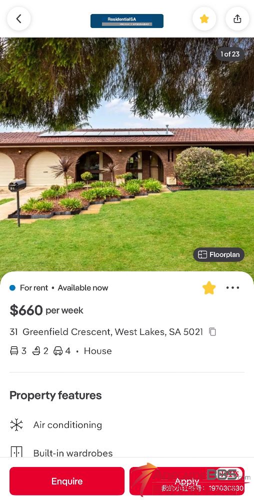 FOR RENT 西北区/West Lake  3房1厅1卫+车库 - 步行3分钟可达公交站(直达Adelaide CBD线路) - 车程5分钟至Westfield West Lakes大型购物中心内有Coles,Woolworths,Kmart餐厅和电影院 - 步行5分钟可达We ...