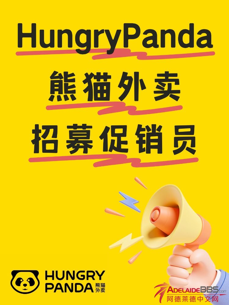 熊猫外卖招募 促销员 *需持ABN *性格开朗热情 *基本英语交流 *活动在阿德莱德 city内较多 有意者,请联系Celine,0435 056 531,短信only。