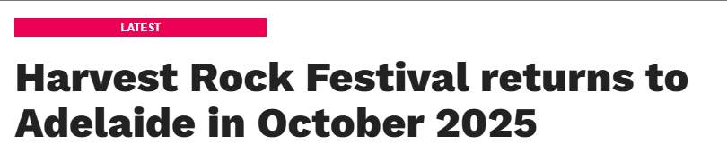 据《Glamadelaide》8月1日报道,Harvest Rock音乐节将于2025年10月回归阿德莱德,10月25日(周六)至26日(周日)期间,将在Murlawirrapurka公园和Ityamai-Itpina/Rymill公园以及King Rodney公园举行音乐、美食与美 ...