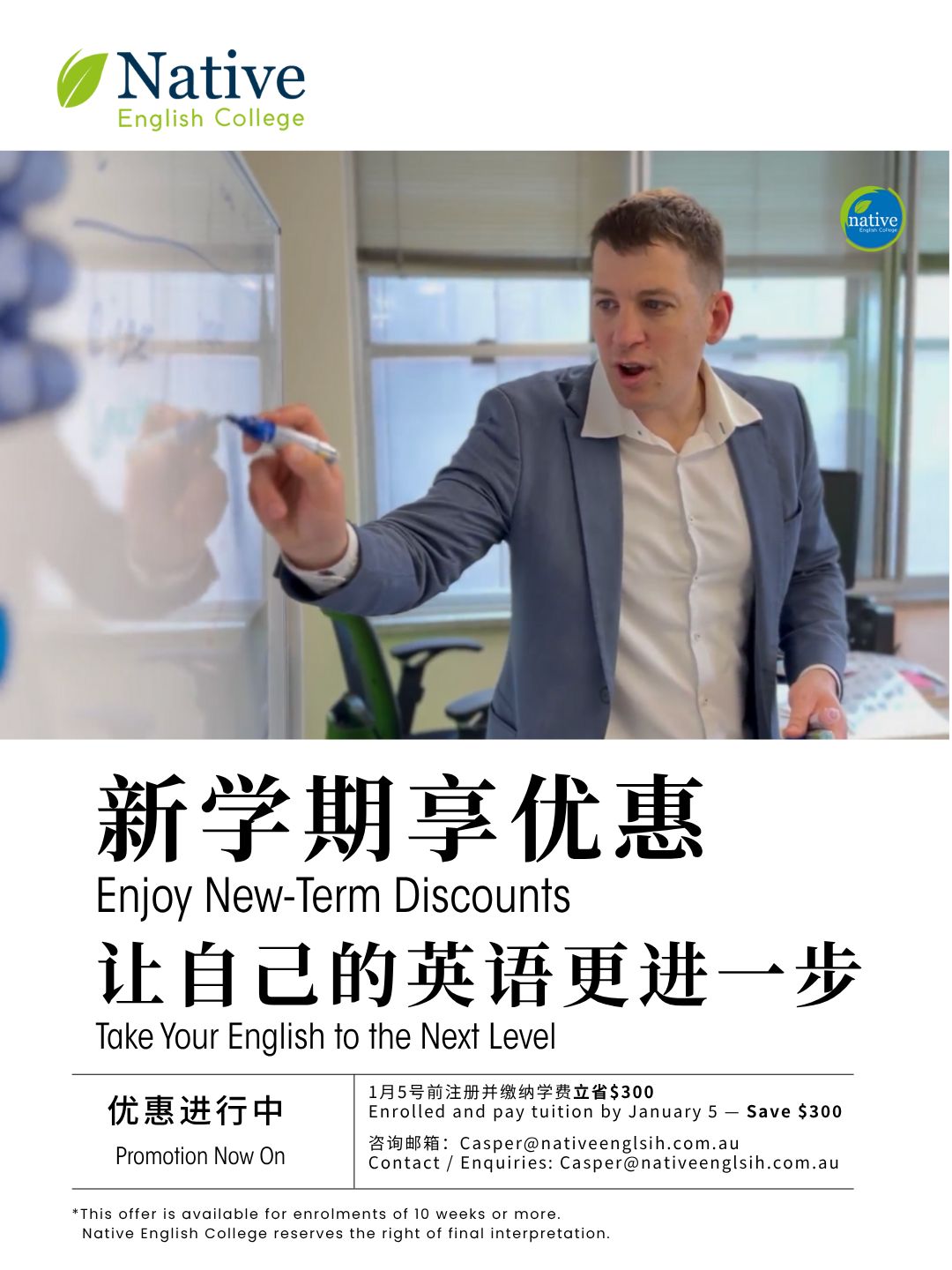 作为 Native English College 的一名教师,我想邀请你来体验一节真正轻松、有趣、有效的英语课我们的所有老师都是 Native English Speakers来自澳洲、英国、美国等英语母语国家,发音纯正,课堂氛围超好。 无论你是 ...