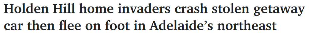 据报道,阿德东北部发生一起入室盗窃案后,三名嫌疑人目前在逃。 嫌疑人从Naretha St疾驰逃逸时,在附近的Gaelic Ave撞上了停放的车辆,随后徒步逃离现场。 被盗车辆已从Gaelic Ave被拖走,并将进行法证分 ...