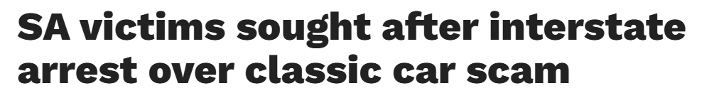 据报道,一名涉及虚假网络汽车广告的男子被跨州逮捕后,南澳警方督促汽车诈骗案受害者民众主动报案。 警方表示,这名56岁的维州男子被指控通过网络广告锁定经典和收藏车买家,其中Holden Monaros和Toranas等车型常 ...
