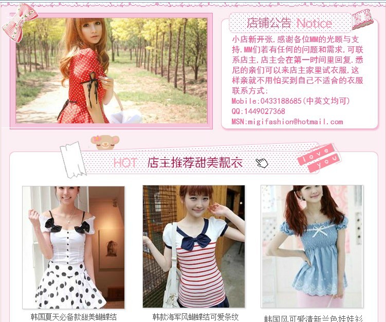 本帖最后由 浩哥 于 2012-1-29 12:46 编辑 www.migifashion.uumall.com.au(小店的网址之名--美姬御衣宫) 本店出售各季节女装, 夏天到了,亲们可以来选购夏装, 晚上出去玩,需要穿个小外套,本店也有. 年底要回国 ...