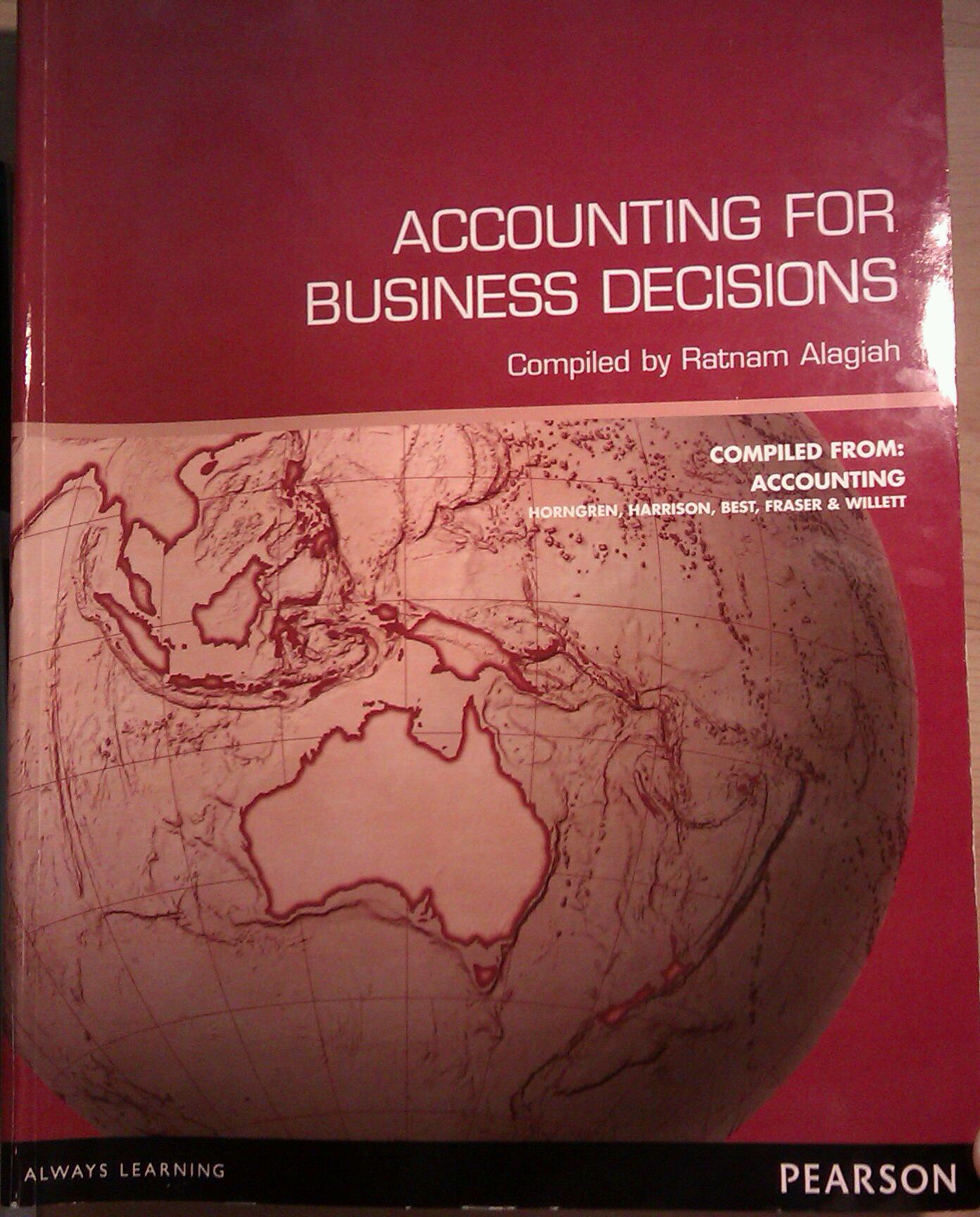 本帖最后由 Y04720 于 2012-3-1 00:43 编辑 课程ACCT 5023 Financial Accounting Fundamentals M 课本 Accounting For Business Decisions -----Compiled by Ratnam Alagiah, pearon 售价:68 联系 ...