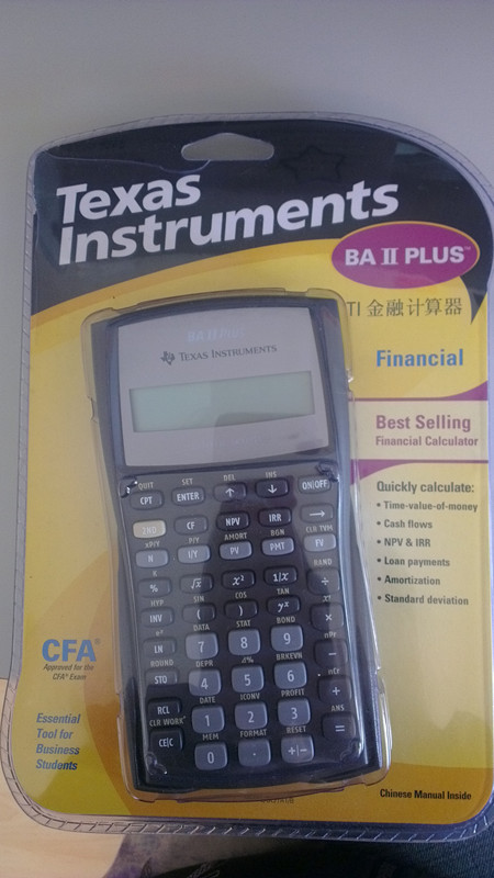 本帖最后由 ruiyu 于 2012-8-16 20:47 编辑 出售全新TI financial Calculator--$50。 原价60刀买的,因为转专业了,连包装都没打开过,全新. 附带中英说明书 有意者请电话或qq联系 PHONE: 04145026 ...