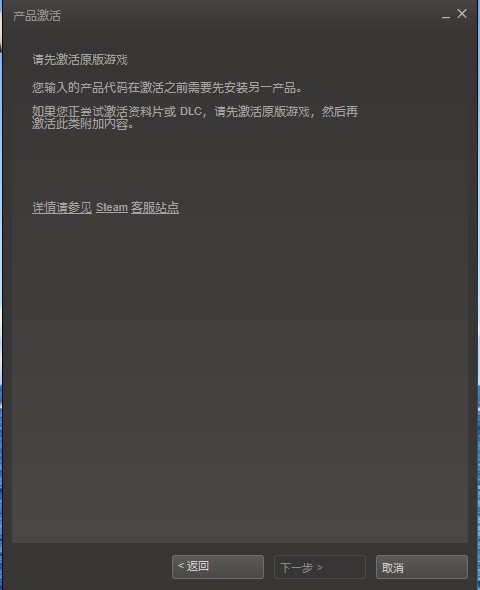 为什么我在steam里面点击激活游戏 里面显示 问题是我游戏都没有安装怎么叫我激活原版游戏啊 谁知道!!
