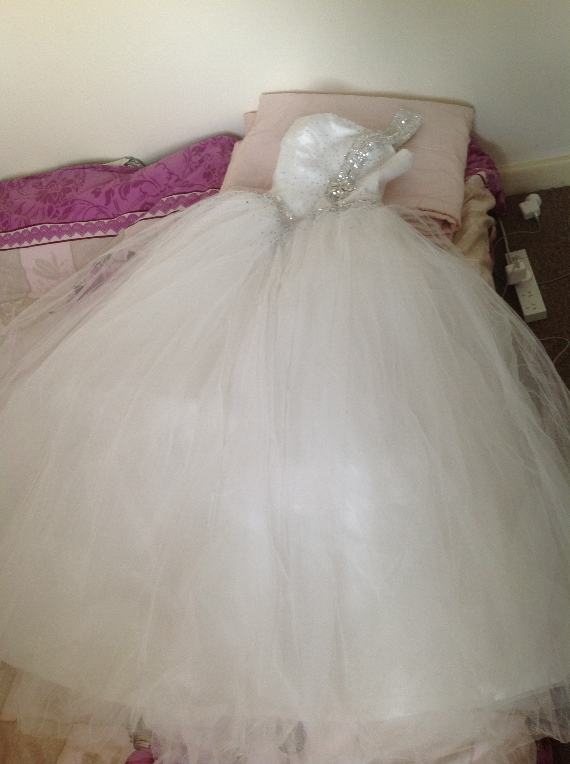 白色精品婚纱一件、适合身高1.55-1.75米的美女穿,婚纱比较厚实、有8层薄纱、胸前的点缀也很丰富、是一件很漂亮的婚纱。由于本人的目的是买来拍婚纱照的,所以穿了 一次,不想回国带回去了、如果有喜欢的朋友可以转 ...