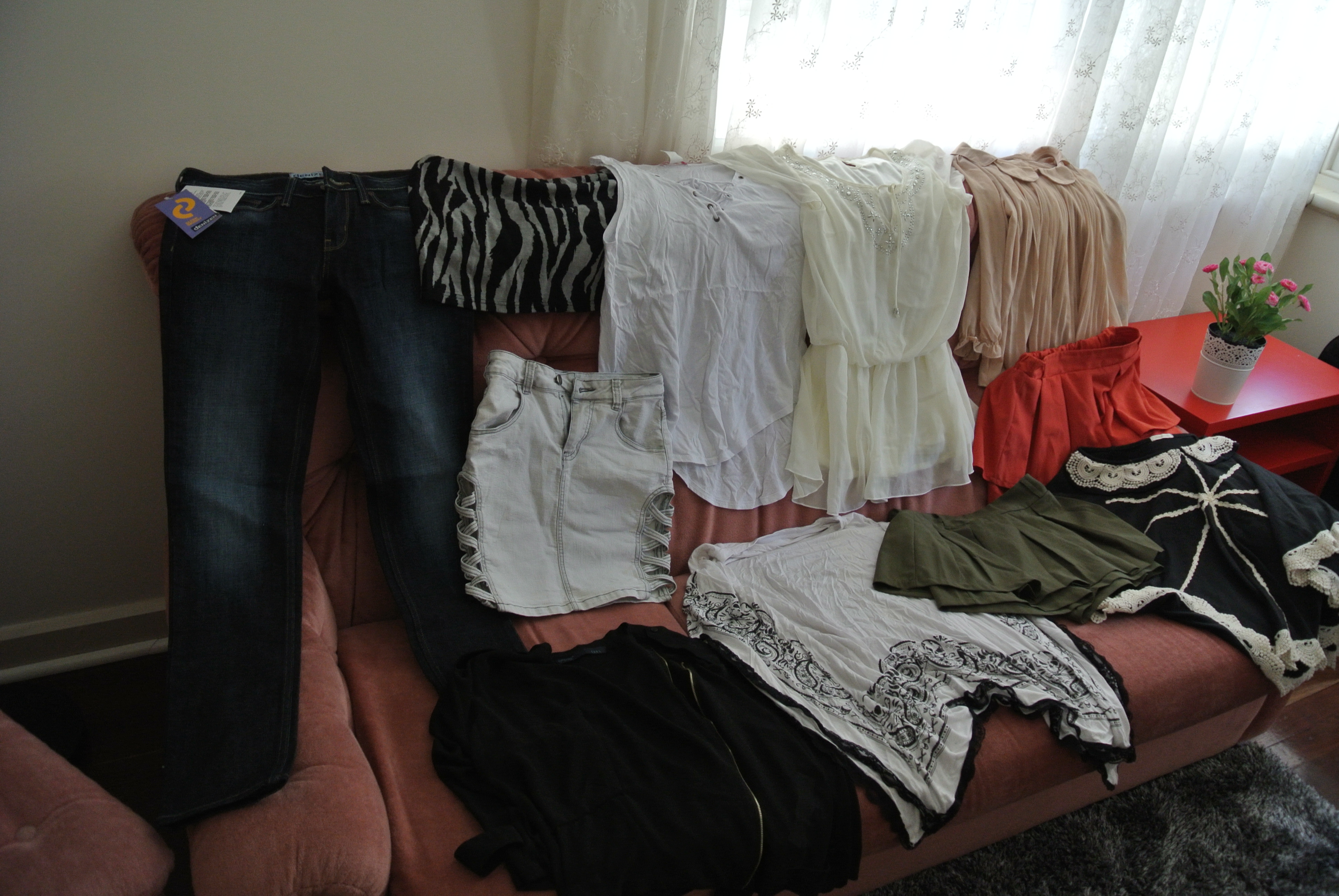 又忘说了。。。。衣服均码可穿,牛仔裤27码,鞋36或者37