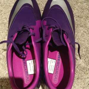 如题,我有一双紫色的Nike Mercurial 足球鞋,也就是阿森纳边锋热尔维尼奥脚上的一双。 全新,只试穿过。 鞋底的标签粘纸神马的都在。 11 码的。 原价159 刀,女朋友打折的时候100多刀当生日礼物买的,但是没有买 ...