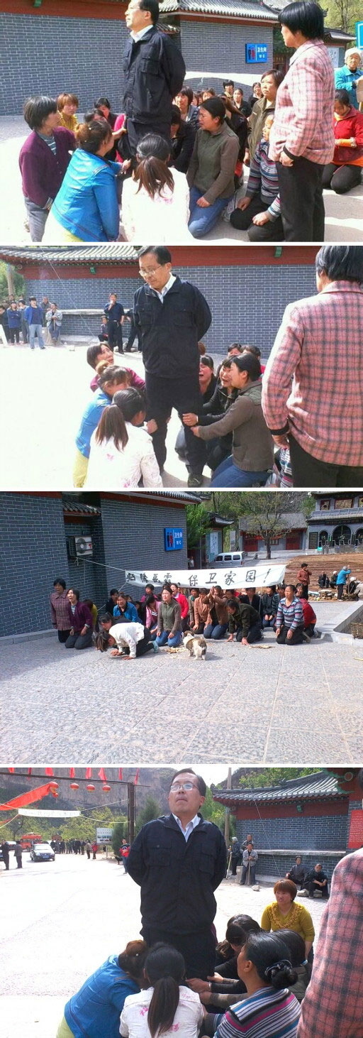 河北平山县北冶乡沕沕水村村长、书记不畏世道艰险,挺身为村民征地维权,不料被上级已“开会”的名义诱骗至乡政府,然后被抓捕。村里曾经参与维权的青壮年男性先后都被抓走了,当地一群女村民跪在乡长张栋礼面前,有 ...