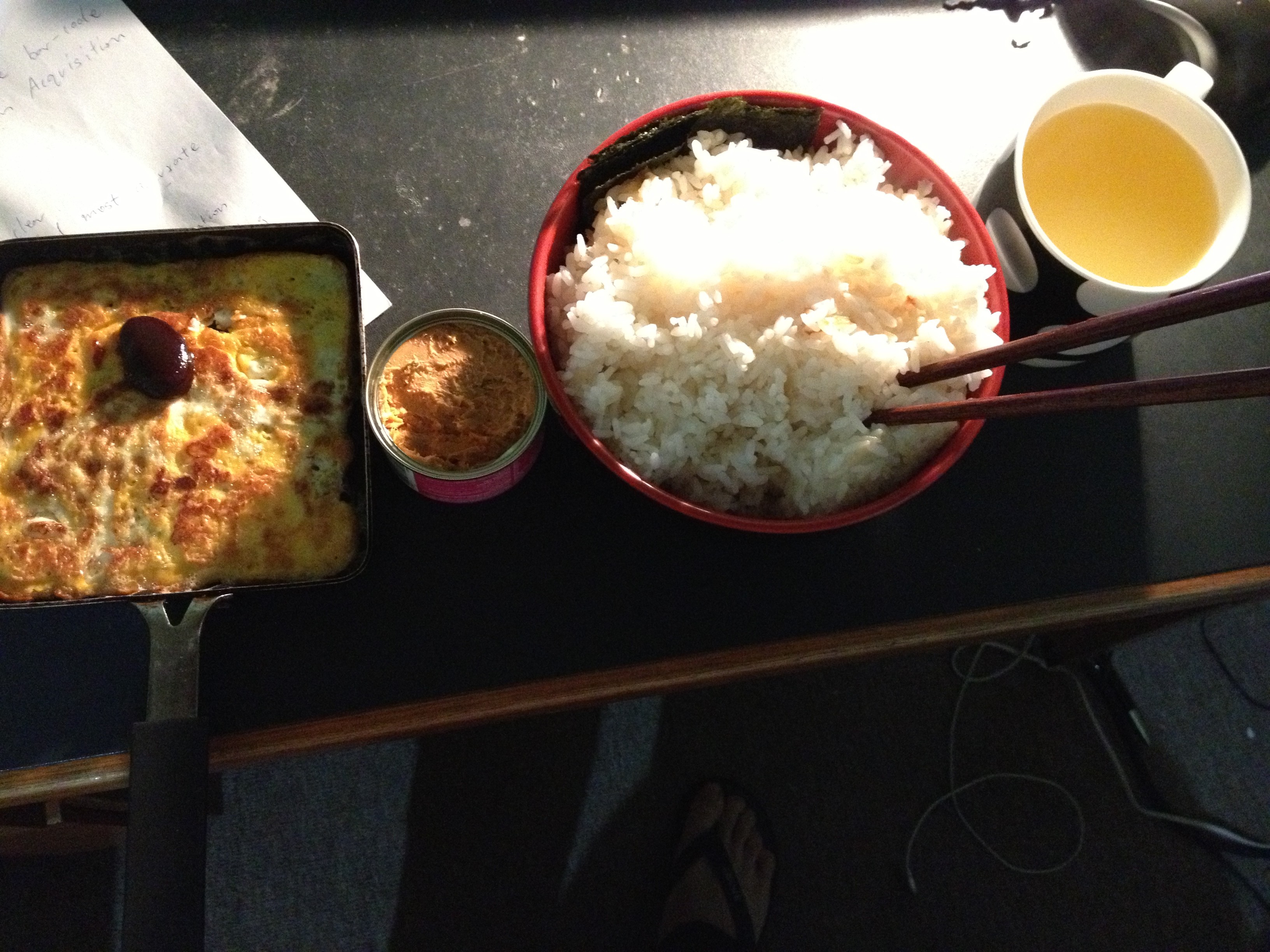 煎蛋 tuna罐头 一大碗白饭 橙汁cordial。 事后吃点维生素 鱼油 锌 我感觉我离死不远了