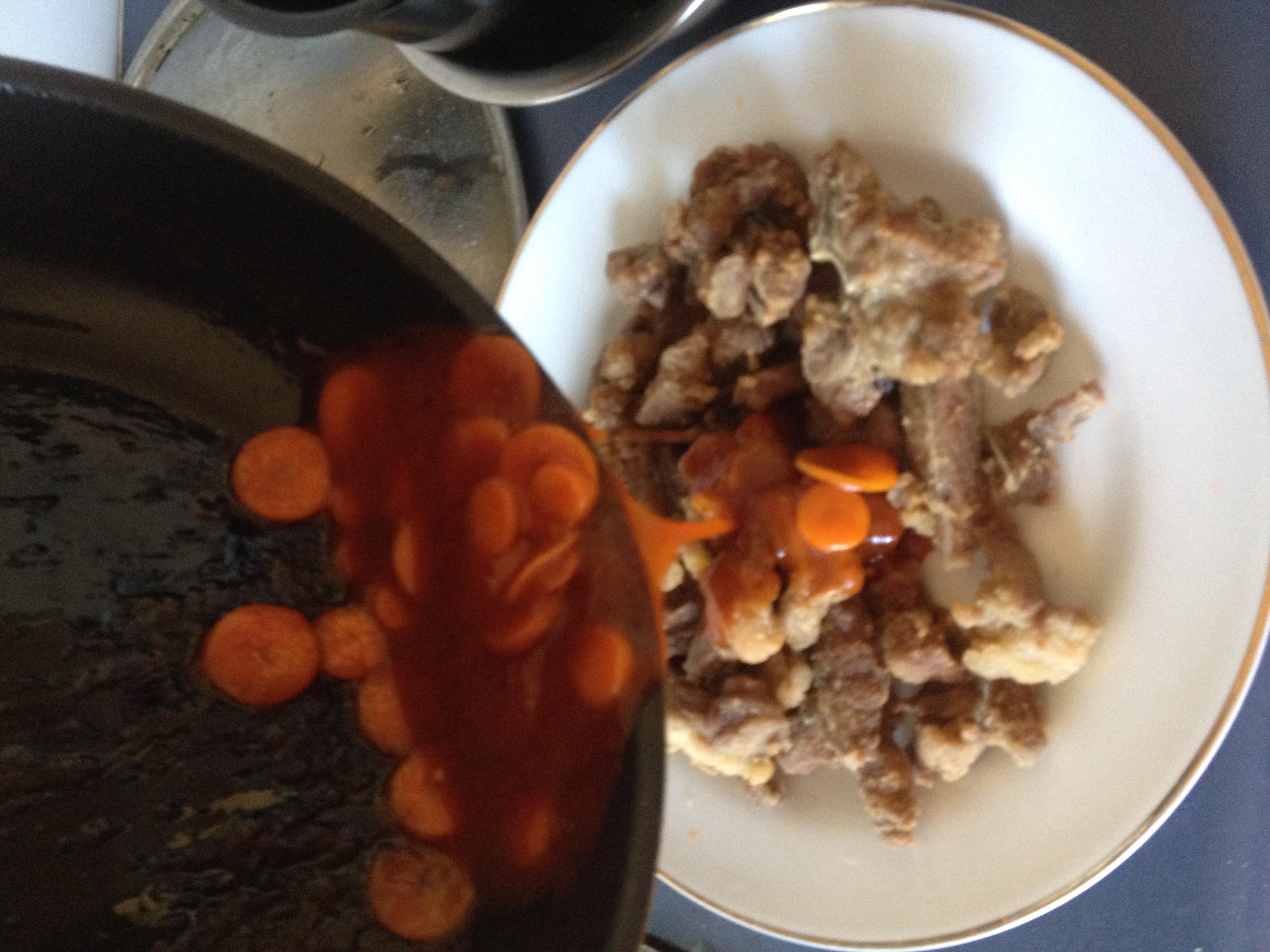 照片是我拍的,东西是我做的,食谱也是我一个一个打出来的哦 第一步,先把羊肉洗净,切块,用盐和五香粉腌20分钟,拌上干面粉,放到热油里炸三分钟,捞出,再次放入热油里炸三十秒,炸两次才酥哦,做厨师的朋友告 ...