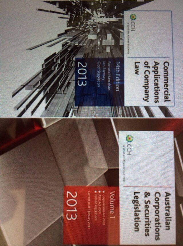 阿大本科会计专业LAW2课本出售。两本80刀。都是九成新的。 Commercial applications of company law Australian corporation&securities legislation