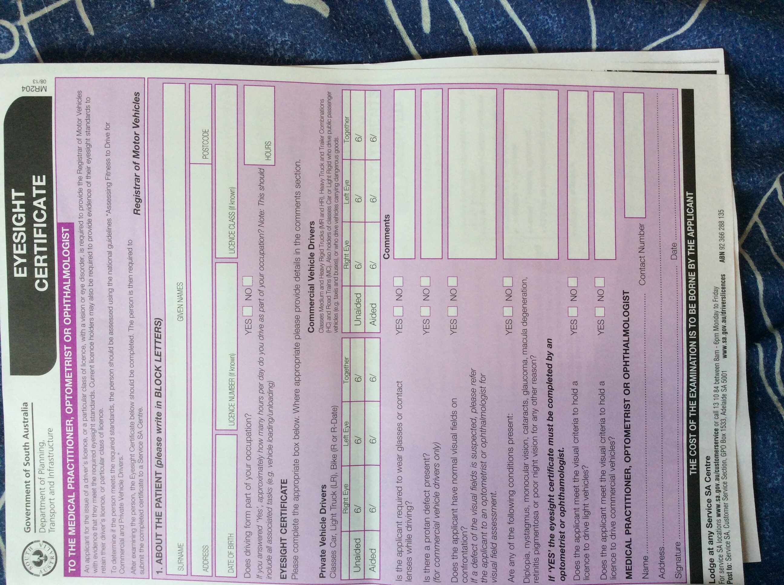 剛申請考learner,我有tick需要帶眼鏡,後來他給我紫色form應該怎樣填?要在那裡找驗眼的? 有沒有人有好介紹? 謝謝!