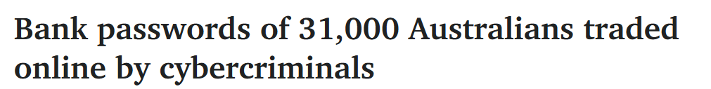 据悉,澳大利亚四大银行客户登录凭证面临风险——调查显示,超3.1万名客户的银行密码遭窃并在犯罪网络流通。 澳大利亚网络安全公司Dvuln调查发现,至少1.4万名CommBank、7000名ANZ、5000名NAB及4000名W ...