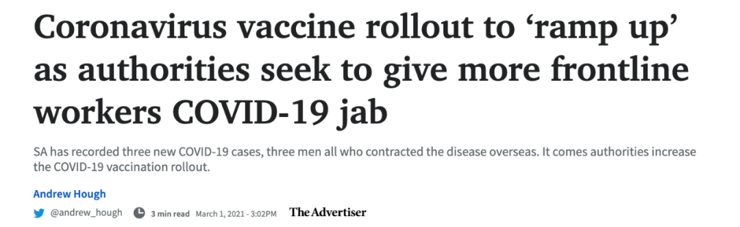 据报道,本周,南澳的COVID-19疫苗推广项目将“加大力度”,卫生部门驳斥了有关第一周疫苗接种速度慢的问题。