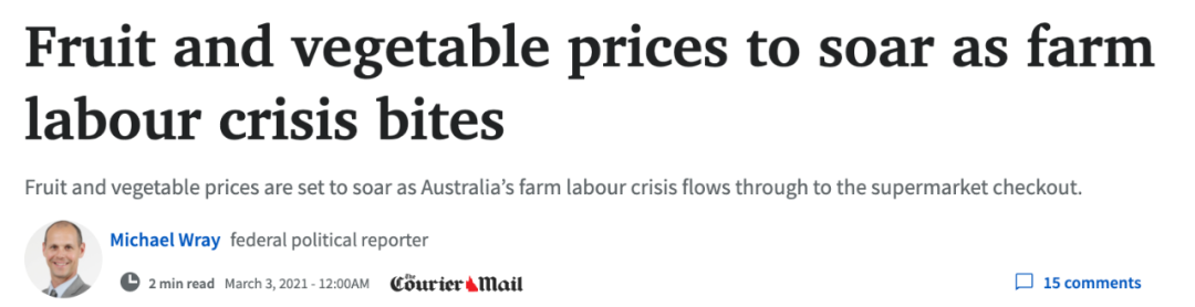 标题: 最新警告:澳洲劳动力严重短缺,果蔬价格将上涨高达30%!