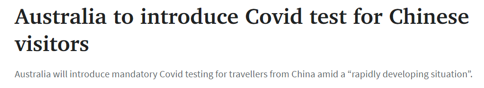 标题: 澳大利亚将对中国游客进行强制性Covid检测