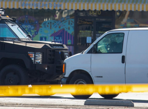 据《The Los Angeles Times》报道,就在当地时间下午1点之前,一支特警队蜂拥而上,在一家日本杂货店Tokyo Central的停车场打碎了该车的窗户。驾驶员一侧的车窗玻璃上有两个弹孔,司机似乎瘫倒在方向盘上。