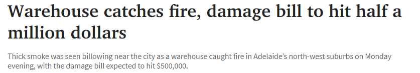 标题: 阿德莱德一仓库起火,损失达到50万澳元!