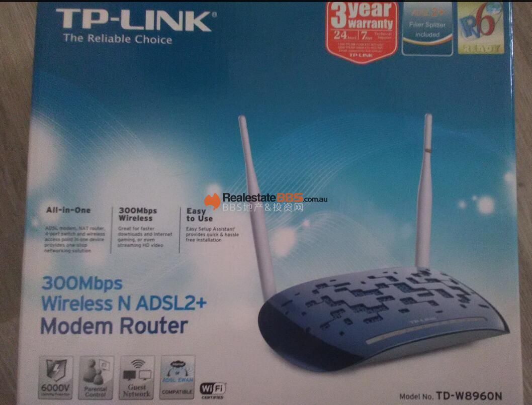 本帖最后由 juggling 于 8-1-2017 22:19 编辑 TP-Link 300Mbps Wireless ADSL2+ Modem Router 性能良好,家里刚升级到NBN,这个路由器用不上了。 2014年5月4日买入,现在还在3年保质期内。可以提供原始 ...