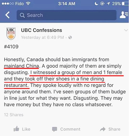 1.Apparently this is not the local traditional canadian's line of thinking. Look at the post, though written in English, don't you feel that he or she is translating chinese into English? Usually your mindset belies who you are!!! 2. Gui Lao (local westerners) they cannot really tell who are from HK, TW or Mainland. Can they? Can they tell the Mainland manderrine or Taiwan Manderine? Can they tell the HK dialect? This, too, Belies who you are!!! 3. SO you know who is the suspect now! Do you? 4. Don't argue too much about it. Though, Envy rots the bone, while as a mainlander myself, we have to learn some etiquette and have a good behaviour, which is very important to win other people's respect. Just my personal views. |