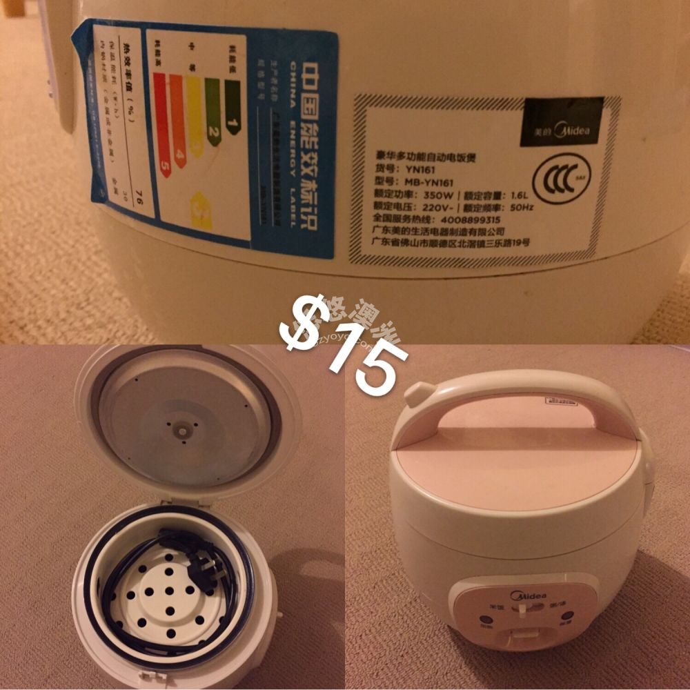 毕业转让 国内带来自用电饭锅 适合一个人使用,方便操作。煮饭非常快,糙米也可以煮的很好~~本人比较爱惜使用,固无任何损坏 质量保证,无任何问题,毕竟使用1年了,现在$15出! 有意者联系 0452 600 51 ...