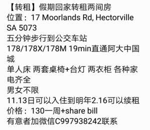 房主放假回国北区Hectorvile转租两间房 交通方便拎包入住啦