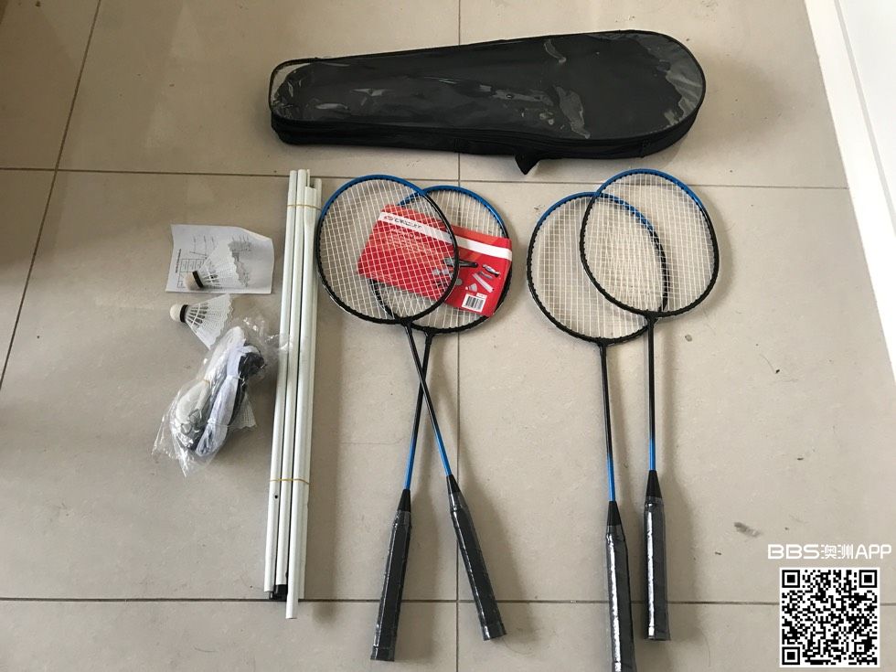 羽毛球球拍有两对,一共4个,包含球网.以及羽毛球 一共20刀. 联系电话0488451214