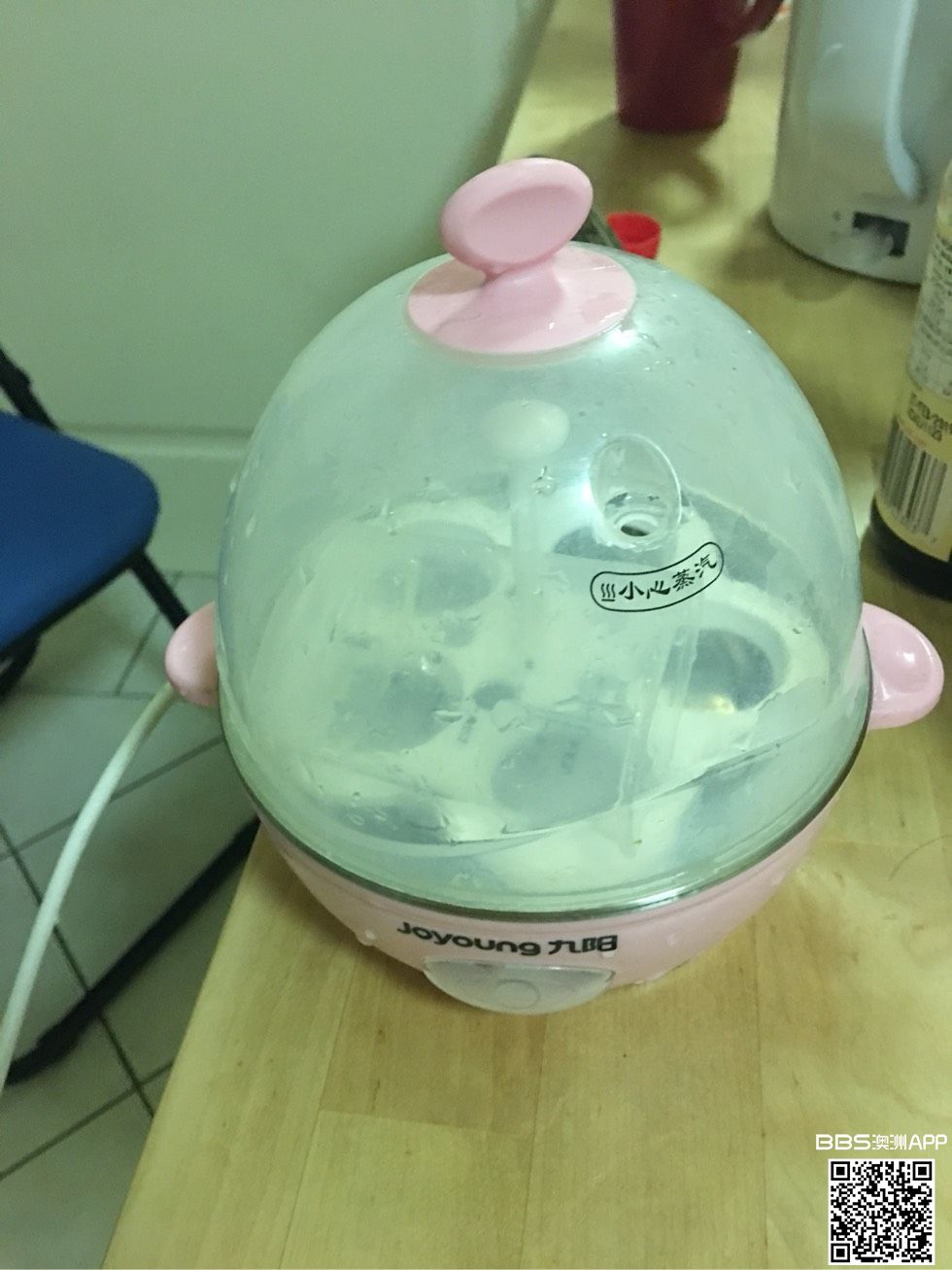 出一个九阳蒸蛋器,可以同时蒸5个蛋,附一个可以控制不同熟的程度的量杯。平时很少用,6刀出。联系电话0449986760